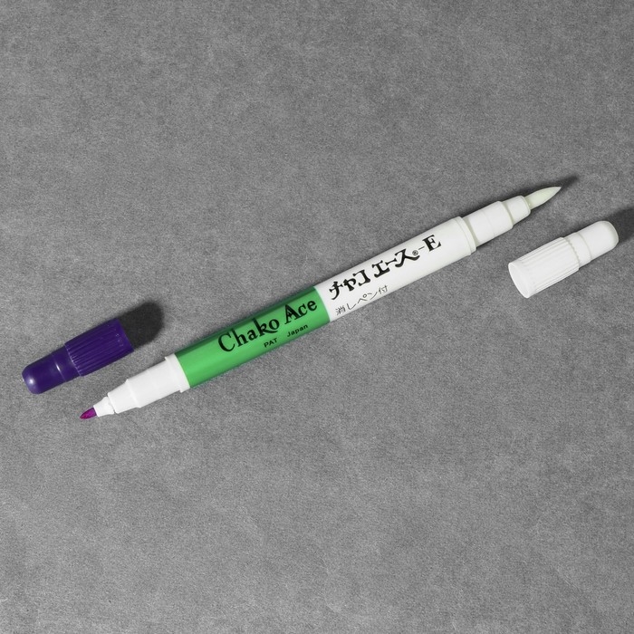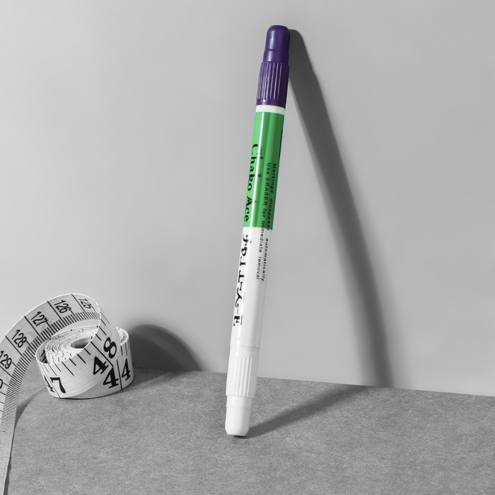 Двусторонний маркер предназначен для выполнения чертежей по ткани. Одна сторона маркера имеет фиолетовый цвет - ей вы можете начертить выкройку. Вторая сторона является корректором и предназначена для исправления и удаления помарок и лишних деталей.