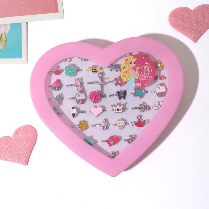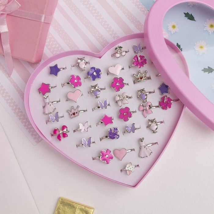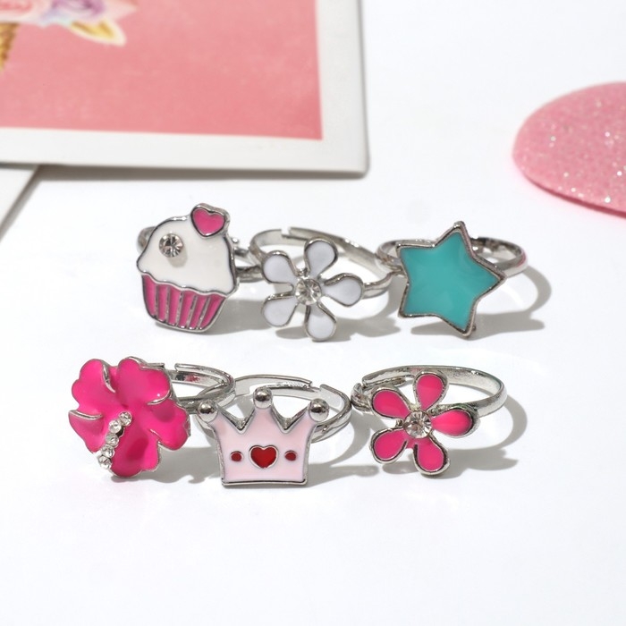 Кольцо детское «Выбражулька» ассорти для девочек, форма МИКС, цвет МИКС, безразмерное