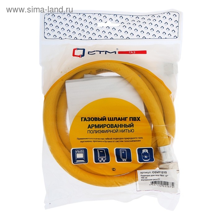 Подводка для газа "СТМ", ПВХ, внутренняя/внутренняя резьба 1/2", 150 см