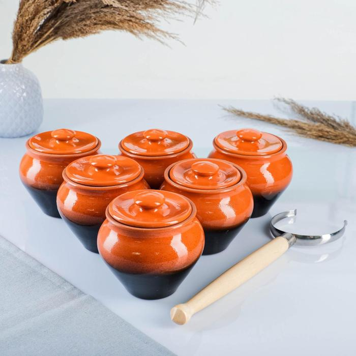 Набор "Вятская керамика №6" 0,5х6 + ухват, МИКС