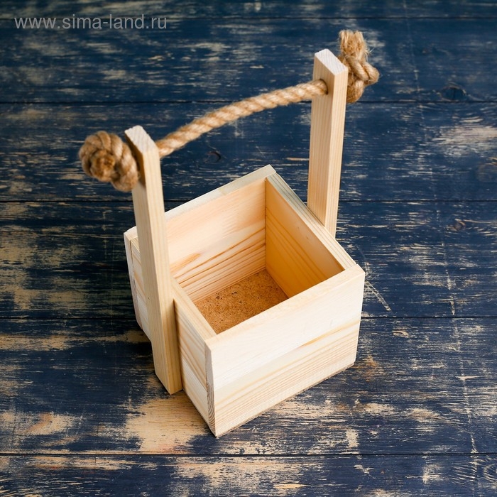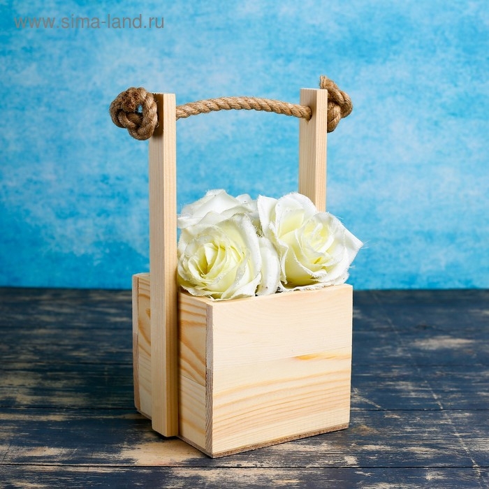 Кашпо деревянное 12×12×11(25) см "Ажур", ручка верёвка, натуральный Дарим Красиво
