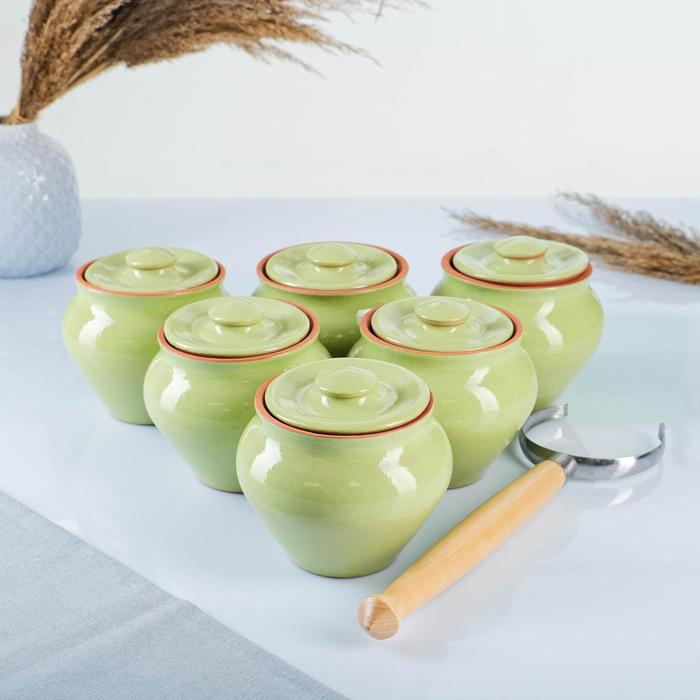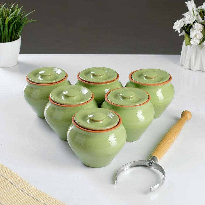 Набор "Вятская керамика №6" 0,5х6 + ухват, салатовый