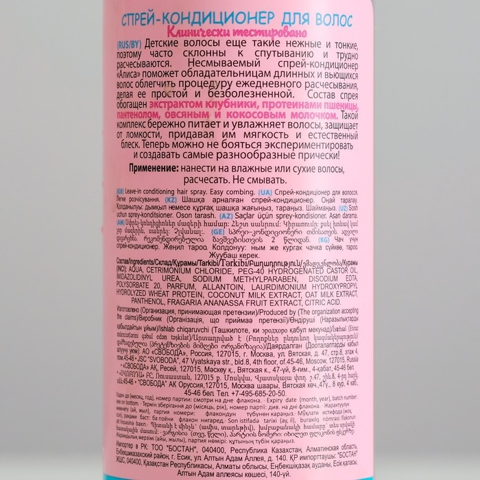 Спрей-кондиционер для волос детский "Алиса" легкое расчесывание, 140 мл