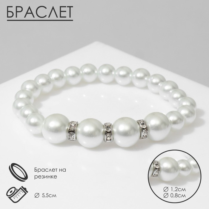 Браслет жемчуг «Невеста» со стразами, шар № 6, цвет белый, d=5,5 см