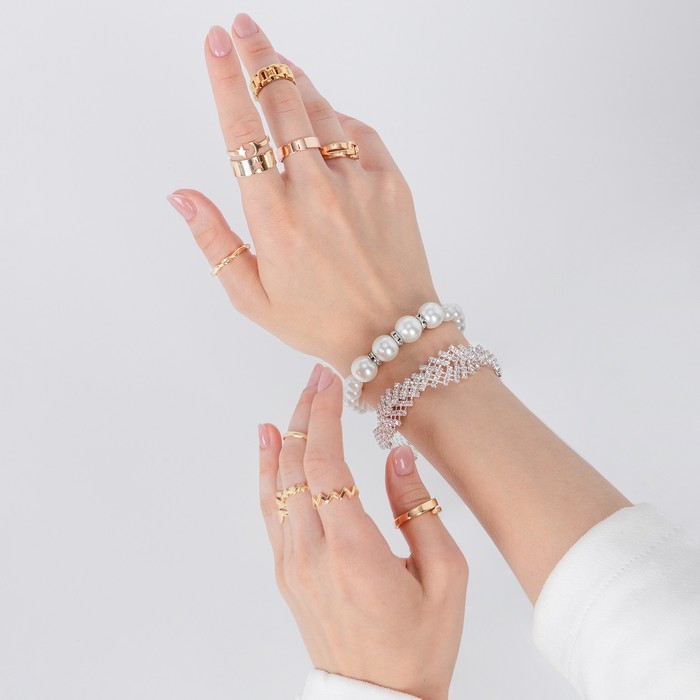 Браслет жемчуг «Невеста» бусины d=0,8+1,2 со стразами 4 штуки, цвет белый