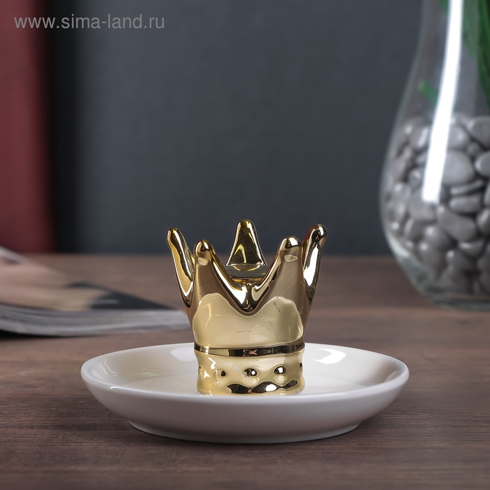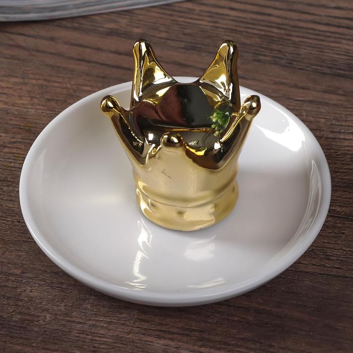 Сувенир керамика подставка под кольца "Корона" золото 6,5х11х11 см