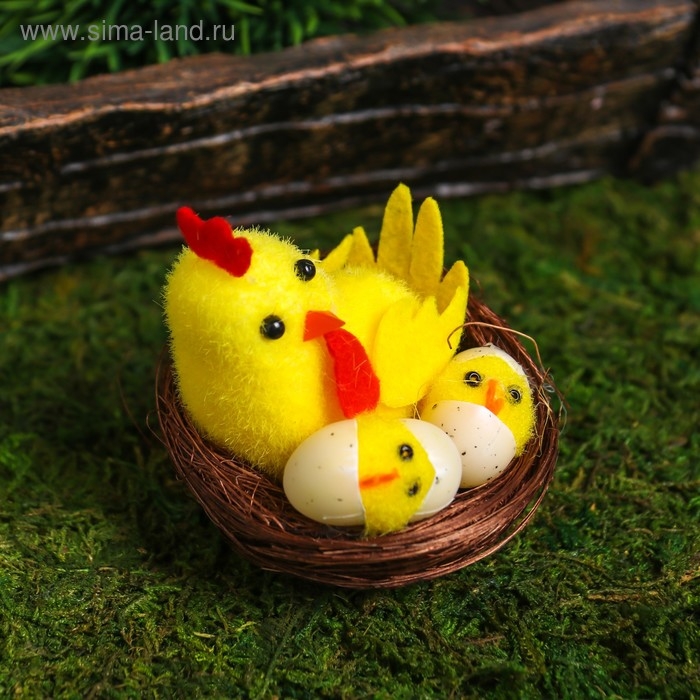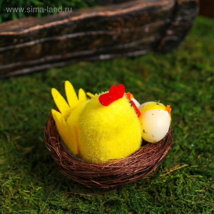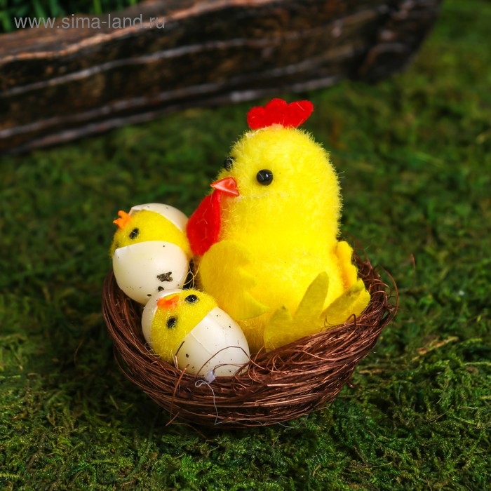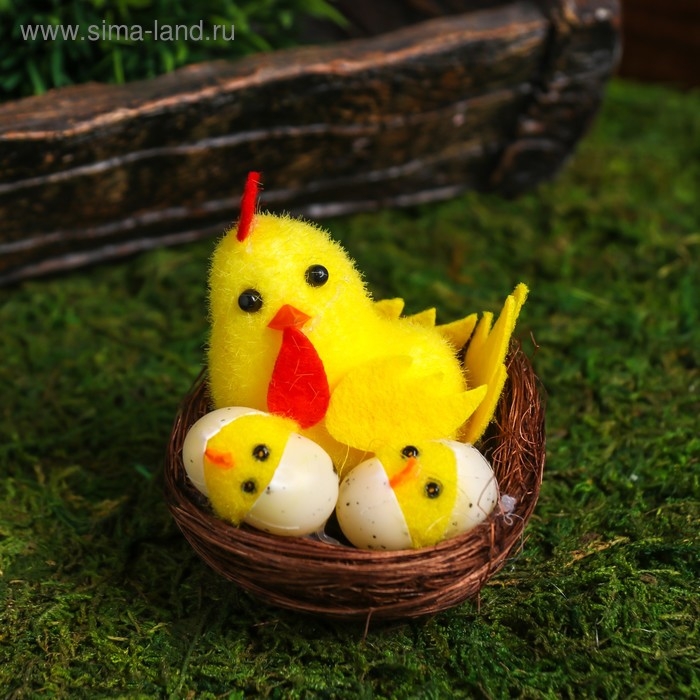 Сувенир пасхальный "Петушок с цыплятами в гнезде" 7х7х7 см