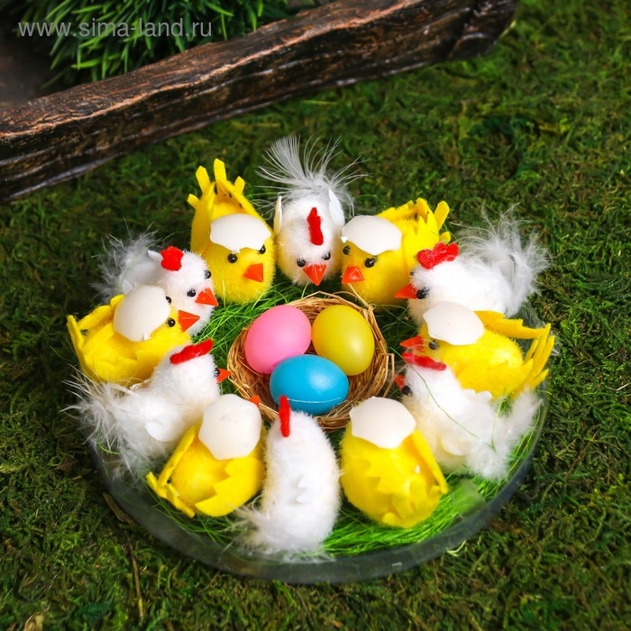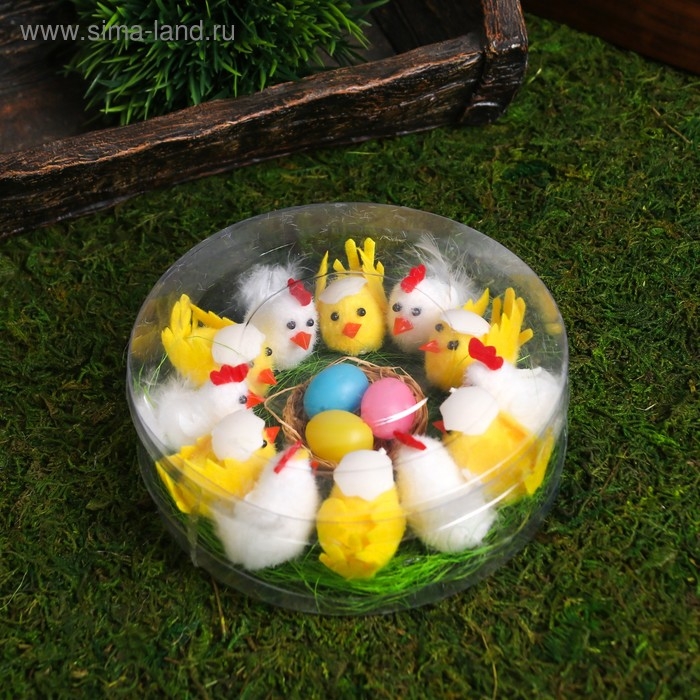 Сувенир пасхальный "Цыплята на травке с гнездом и яичками" набор шт 12 4,5х14х14 см