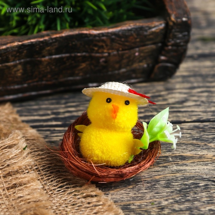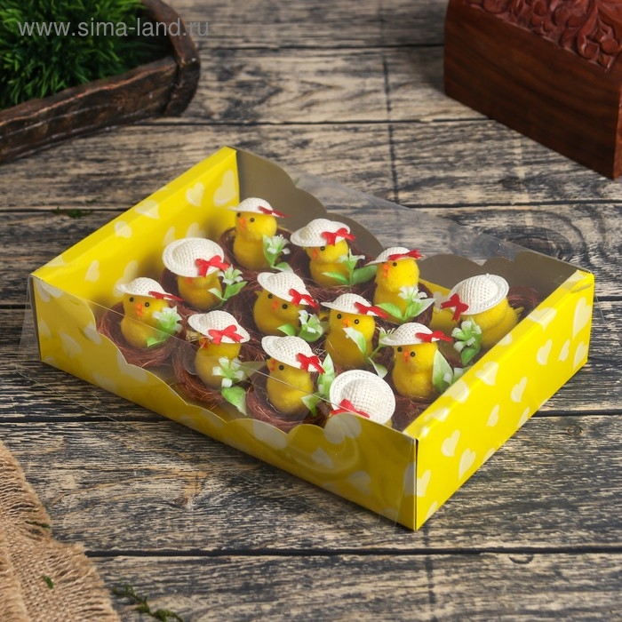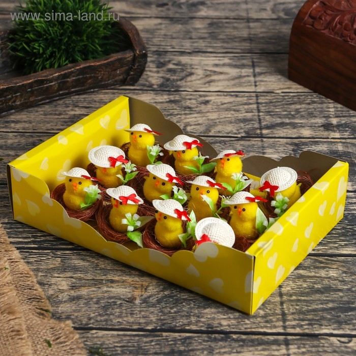 Сувенир пасхальный "Цыпа в шляпке в гнезде с цветочками" набор 12 шт 5х5х5 см