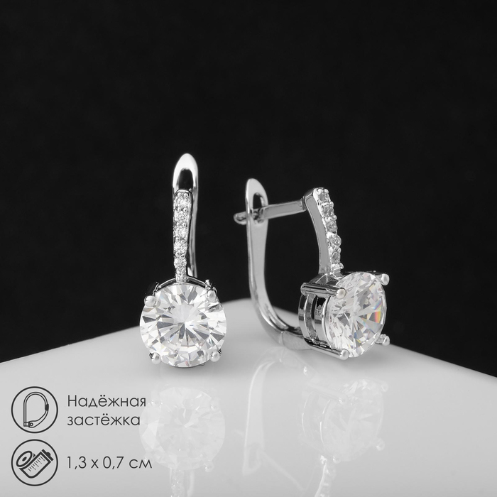 Серьги со стразами «Яркая классика» в обрамлении, цвет белый в серебре, d=1,4 см