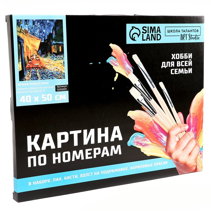 Картина по номерам на холсте с подрамником «Ночная терраса кафе» Винсент ван Гог, 40 х 50 см понравится и детям, и взрослым.