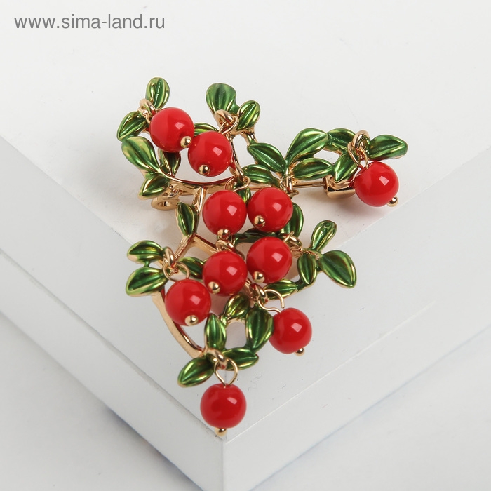 Брошь «Ветвь коралловая», цвет красно-зелёный в золоте
