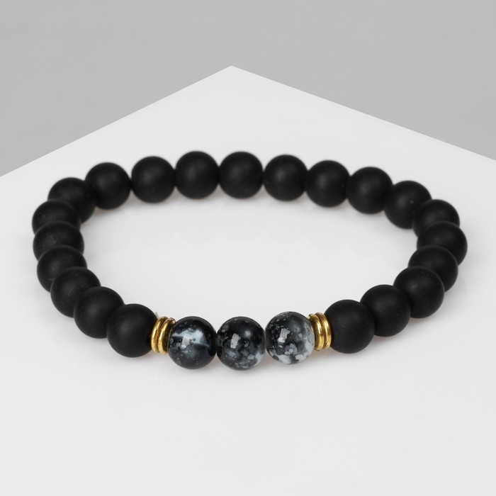 Браслет унисекс «Бастион» под агат моховой, цвет чёрный, шар №8, d=7 см