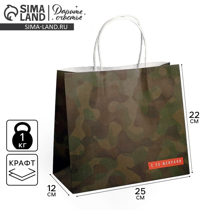 Пакет подарочный крафт, упаковка, «С 23 февраля», 25 х 22 х 12 см