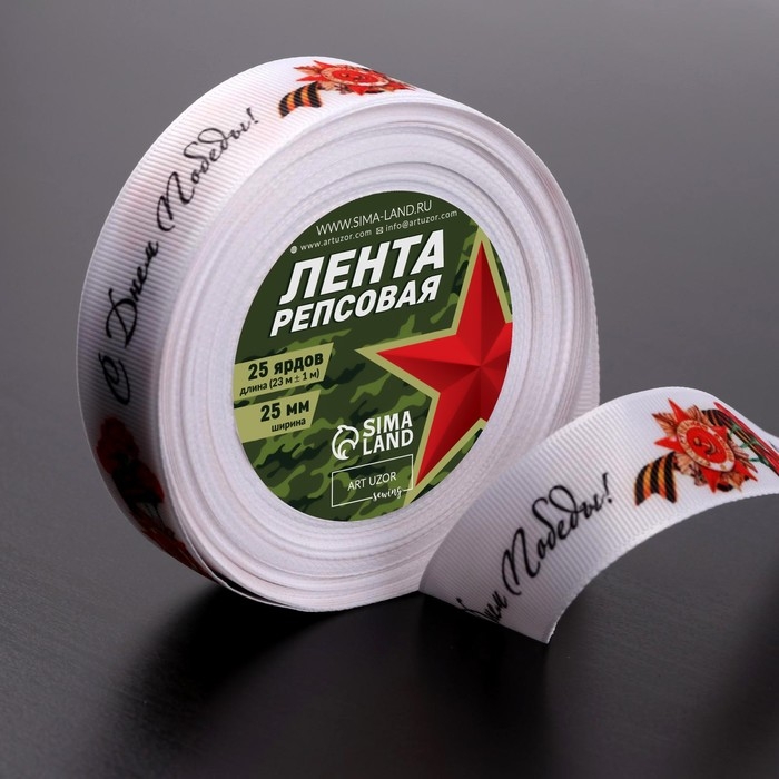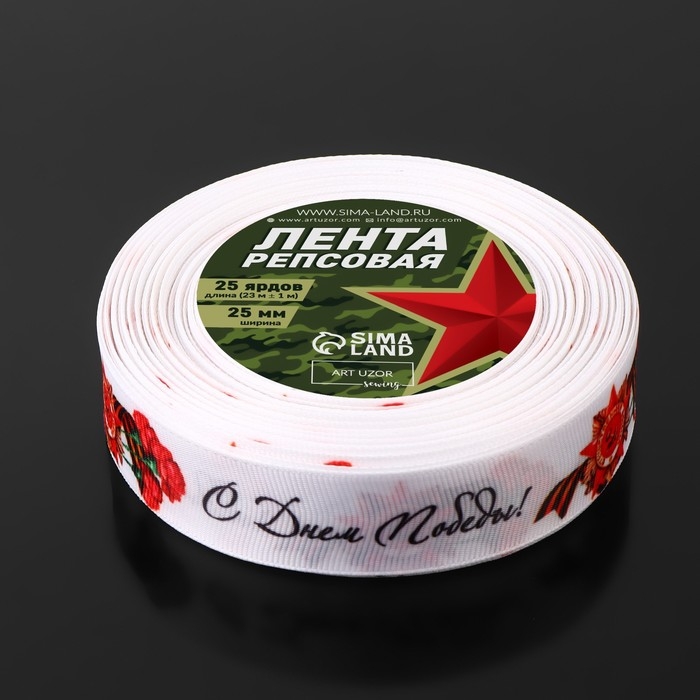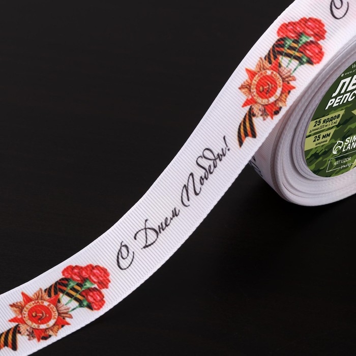 Лента репсовая «С Днём победы», 25 мм, 23 ± 1 м, цвет белый