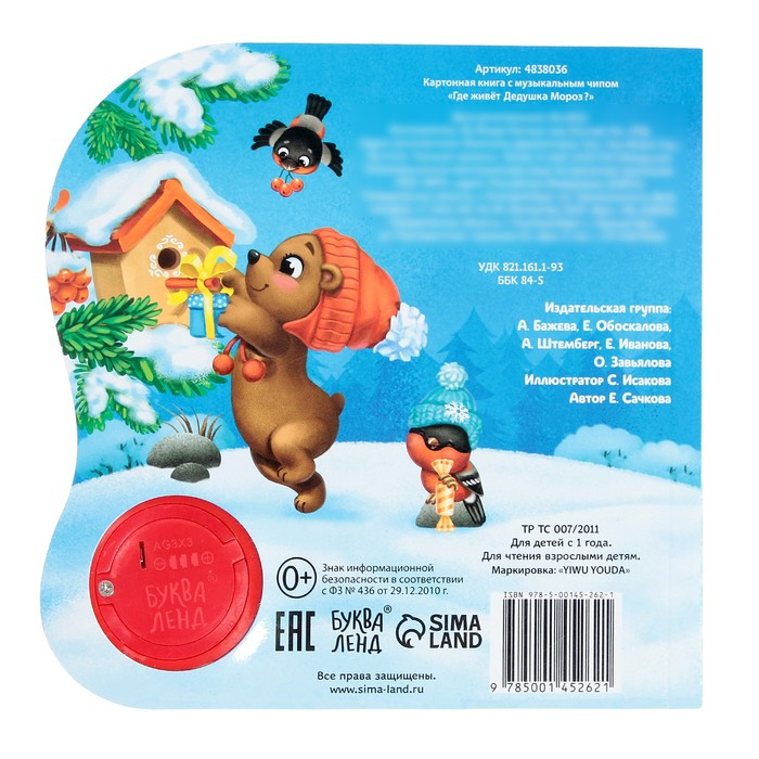 Тематическая книга «Дом Дедушки Мороза» с музыкальным чипом приобщит малышей к чтению. Красочные картинки помогут развить воображение, образное мышление и эмоциональное восприятие.