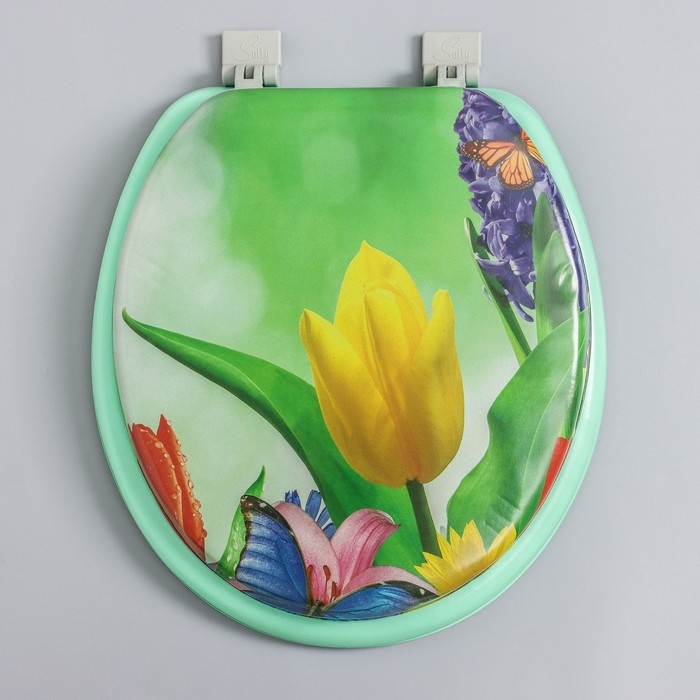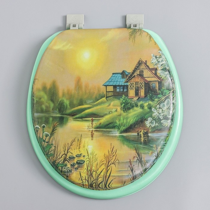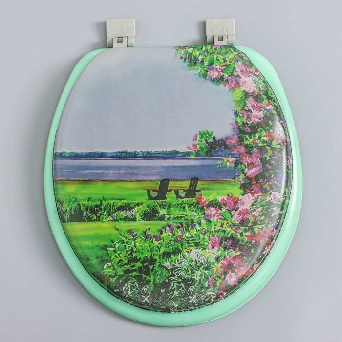 Сиденье для унитаза с крышкой,Росспласт, 43 х 37 см, мягкое, зелёное, МИКС