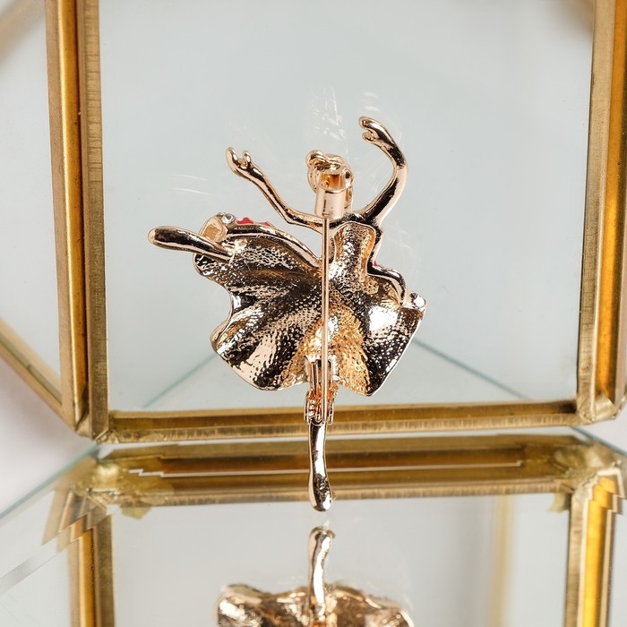 Брошь "Балерина" в пышном платье, цвет красно-белый в золоте