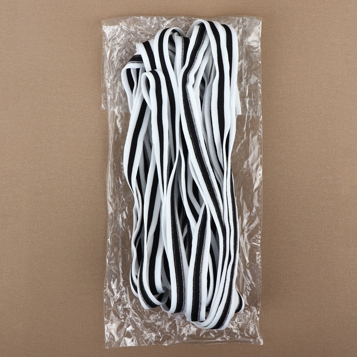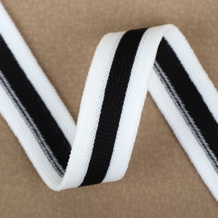 Тесьма трикотажная лампас 15 мм, 9,1 ± 0,5 м, цвет белый/чёрный