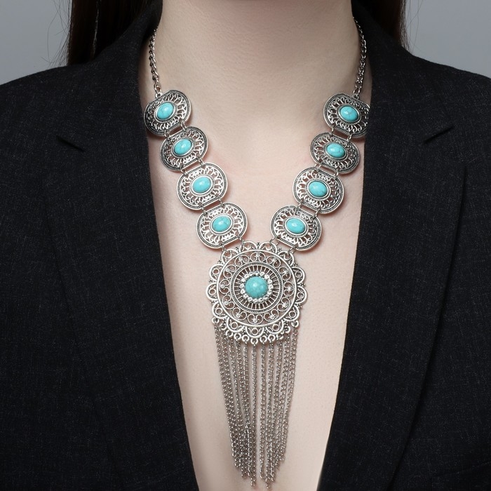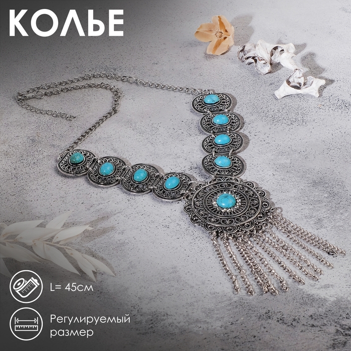 Колье «Гестия» круг, цвет голубой в чернёном серебре, 45 см