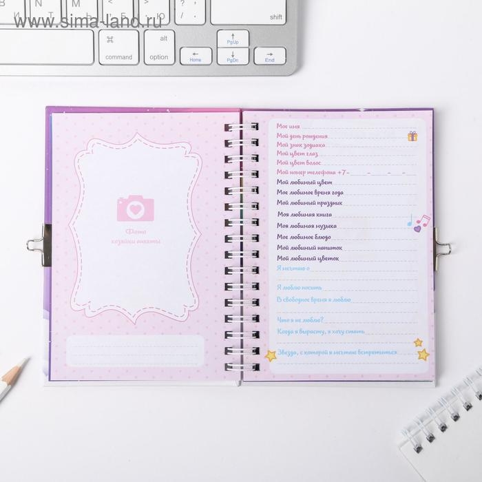 Анкета на замочке, в твердой обложке А6, 40 листов «Замурчательная»