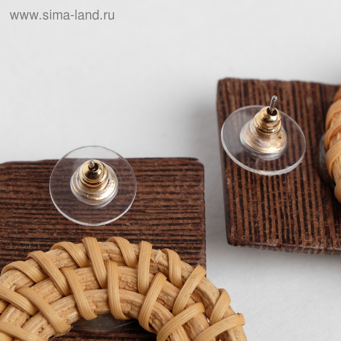 Серьги из дерева «Ваканда» стиль, плетёный диск, цвет бежево-коричневый