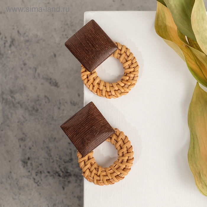 Серьги из дерева «Ваканда» стиль, плетёнка, цвет бело-коричневый