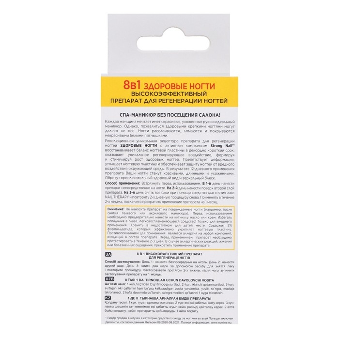 Средство для ногтей 8 в 1 Eveline Nail Therapy «Здоровые ногти», 12 мл