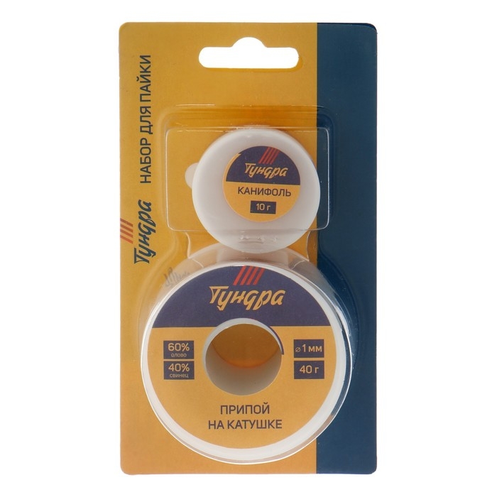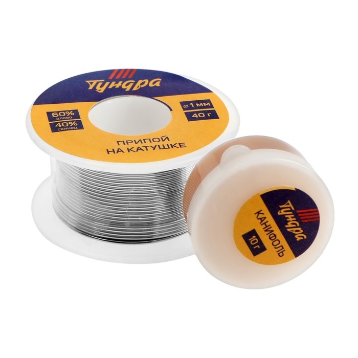 Набор для пайки ТУНДРА, ПОС 60, 1 мм, 40 г и канифоль 10 г