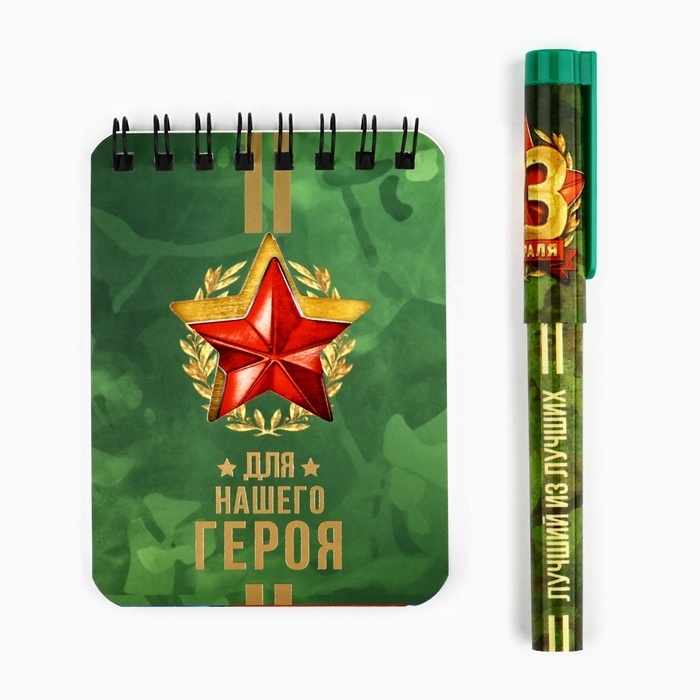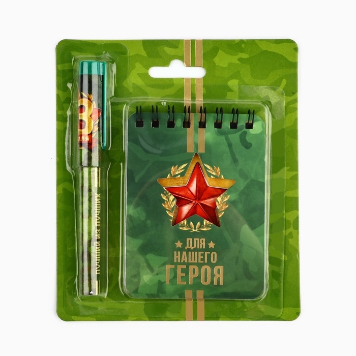 Подарочный набор «Для нашего героя»: блокнот и ручка пластик