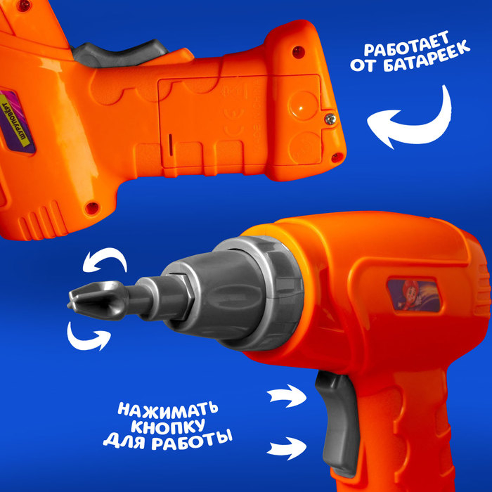 Детский инструмент для конструктора «Шуруповёрт», 3 насадки, на батарейках