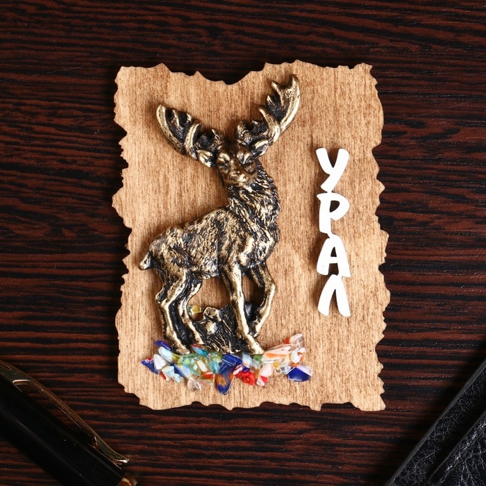 Магнит "Олень северный", дерево, гипс, 7х9 см