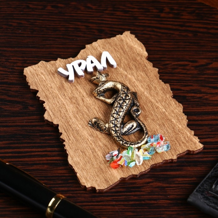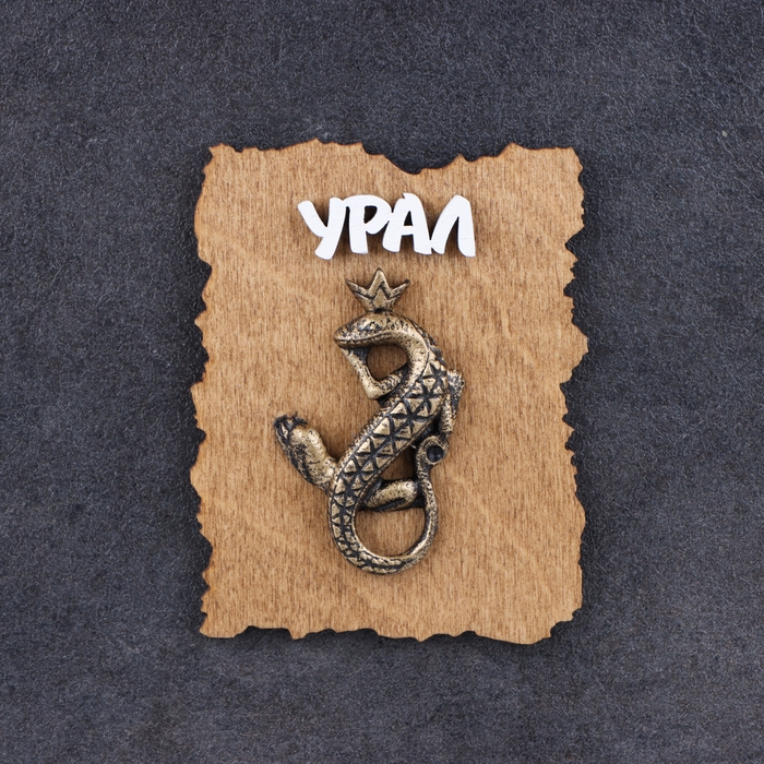 Магнит "Ящерка с короной", дерево, гипс, 7х9 см