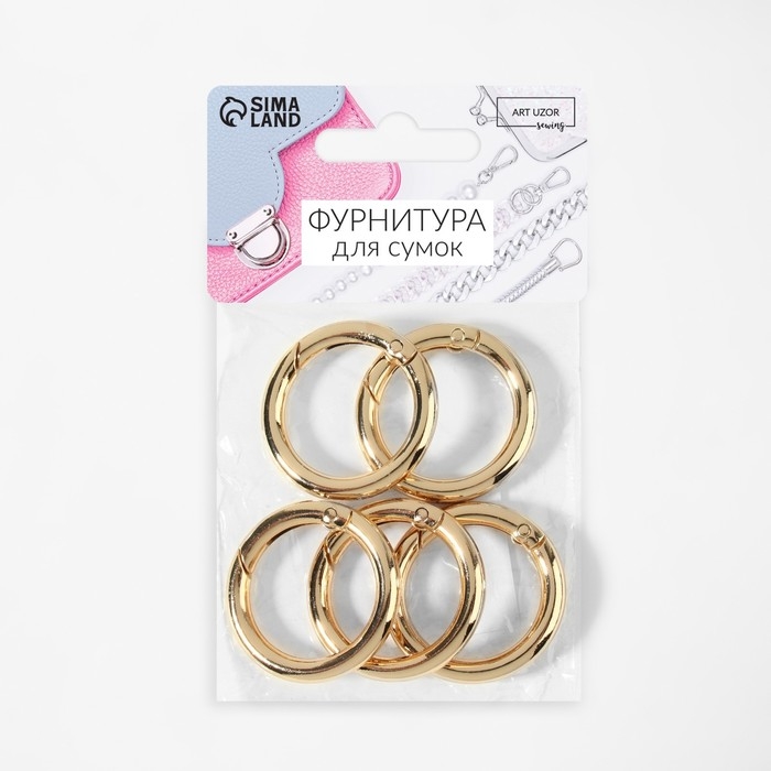 Кольцо-карабин, d = 25/35 мм, толщина - 5 мм, 5 шт, цвет золотой