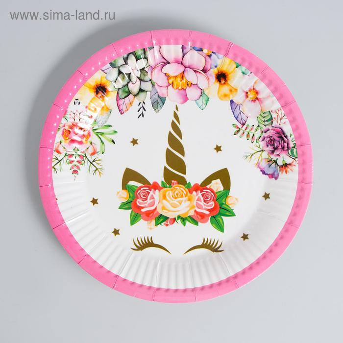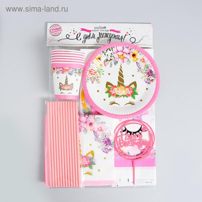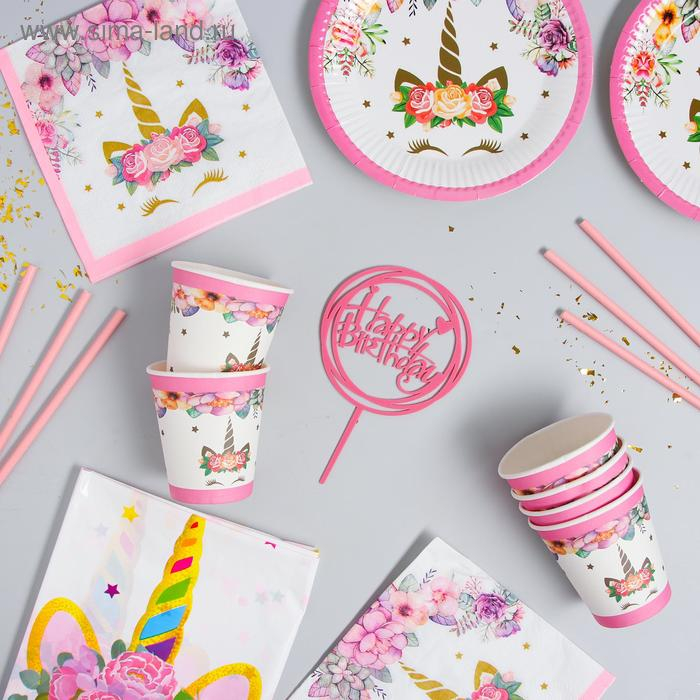 Набор посуды «С днём рождения», единорожка, цвет розовый