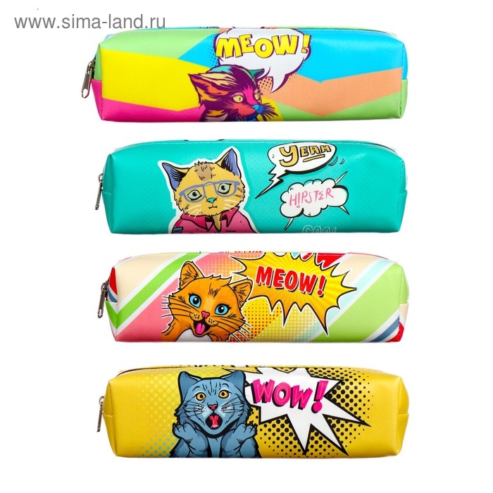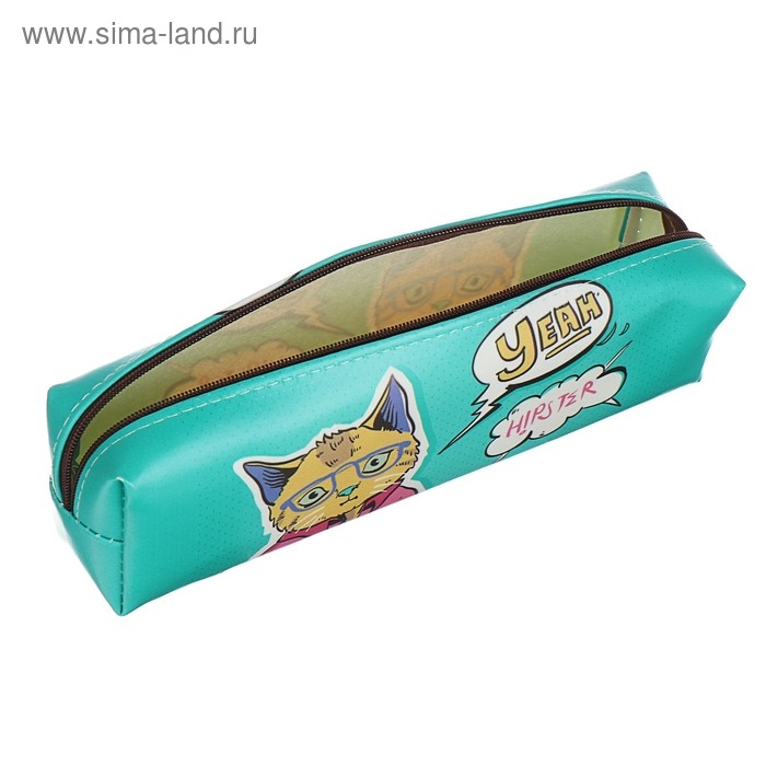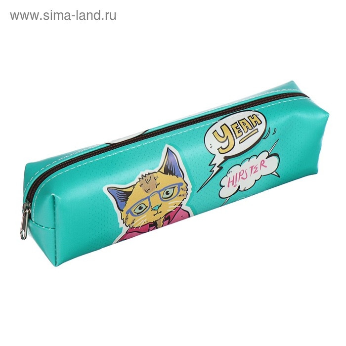 Пенал школьный "Прикольный кот", на молнии, МИКС