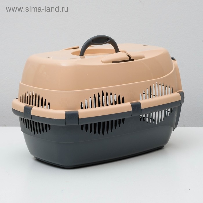 Переноска для животных до 9 кг "Пижон", металлическая дверь, 43 х 29 х 27,5 см, бежево-серая