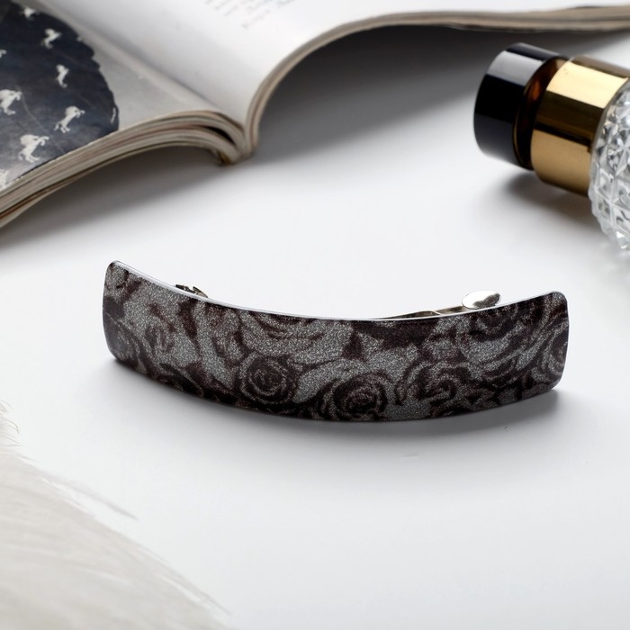 Заколка-автомат для волос "Серебряная ночь" 8 см, чёрно-серебристый