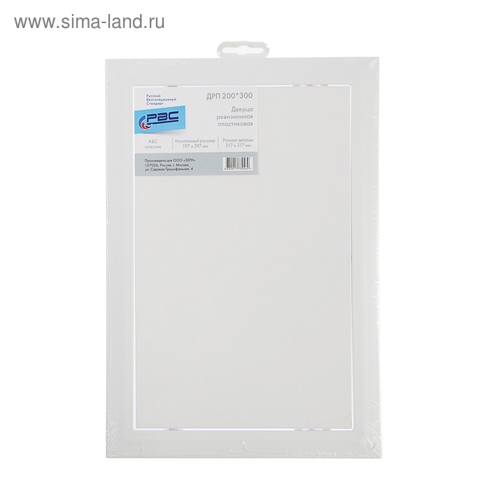 Люк ревизионный "РВС", 200 х 300 мм, пластик, белый