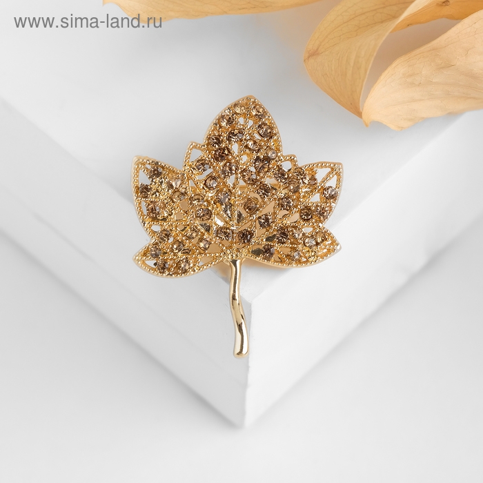 Брошь "Листик", цвет светло-коричневый в золоте