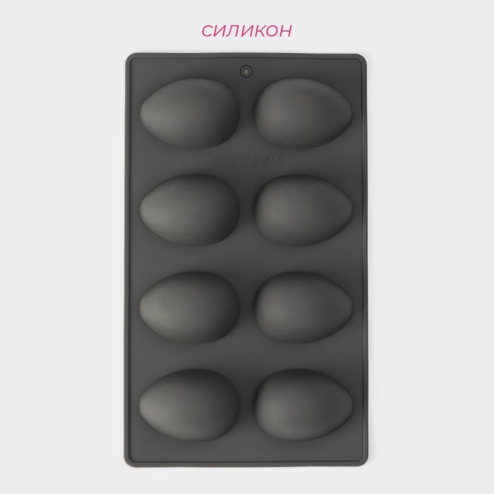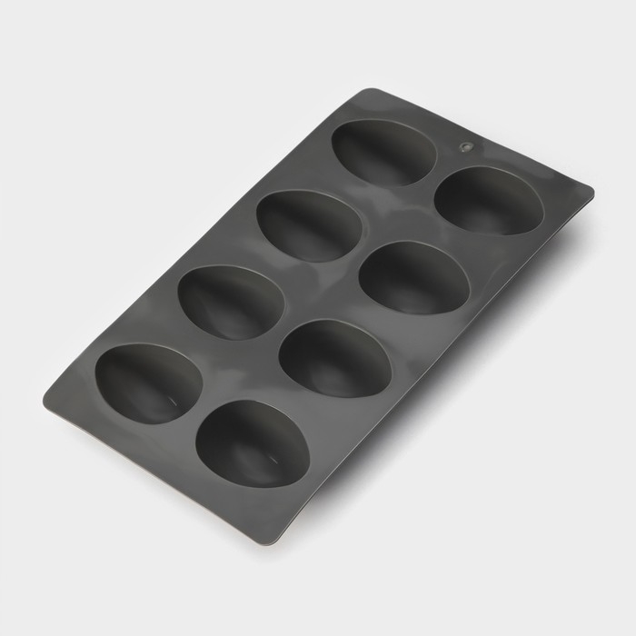 Форма для выпечки Доляна «Яйца», силикон, 27,5×16,5×3 см, 8 ячеек, 6,3×4,4 см, цвет серый
