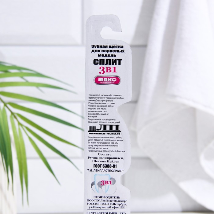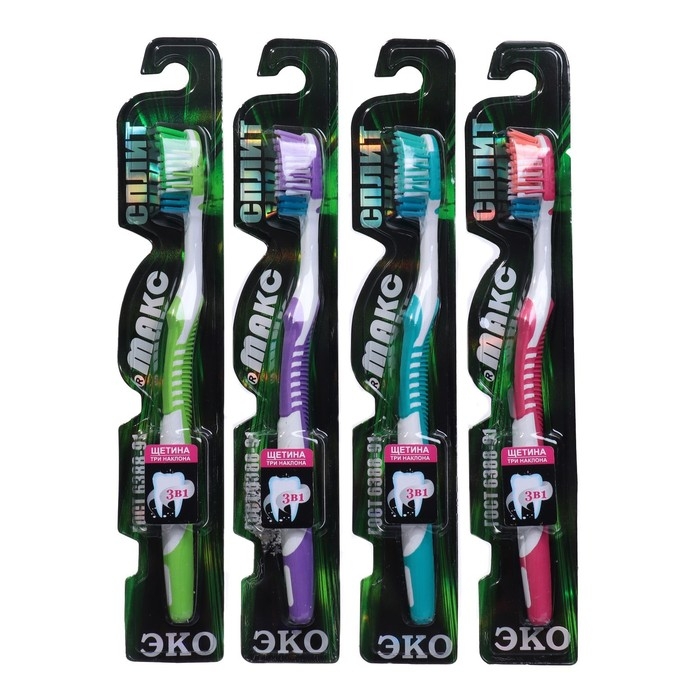 Зубная щётка «Сплит», трехкомпонентная ручка, разнонаправленная и разноуровневая щетина, цвет микс
