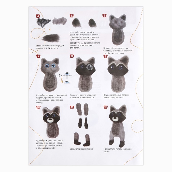 Набор для творчества. Игрушка из шерсти «Енот с цветами»