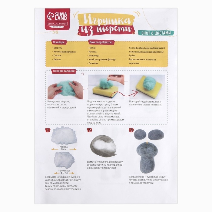 Если вы никогда не работали в технике сухого валяния - не проблема! Натуральная, очень мягкая и податливая шерсть и подробный мастер-класс помогут создать неповторимый шедевр даже новичкам.