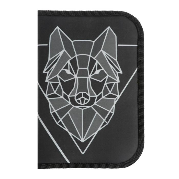 Пенал 3 секции, вкладка внутри, 140 х 210 х 40 мм, тканевый, Calligrata TOP Block "Волк графика"