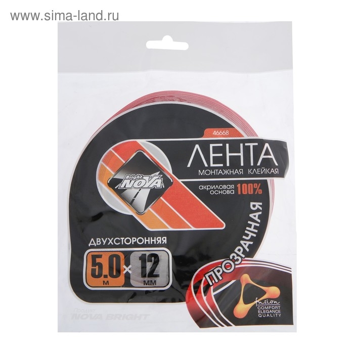 Клейкая лента Nova Bright-fusion, двусторонняя, акриловая, 12 мм х 5 м
