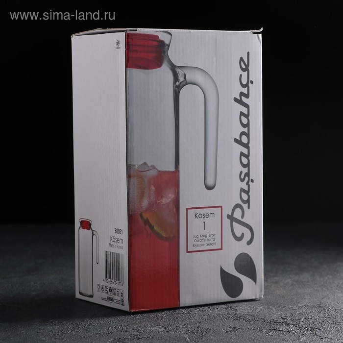 Кувшин стеклянный Kosem, 1 л, красная крышка