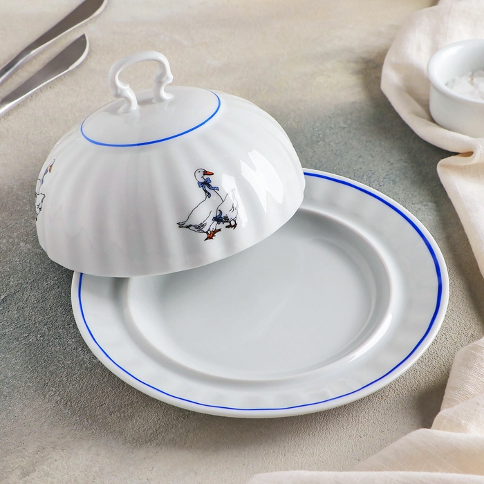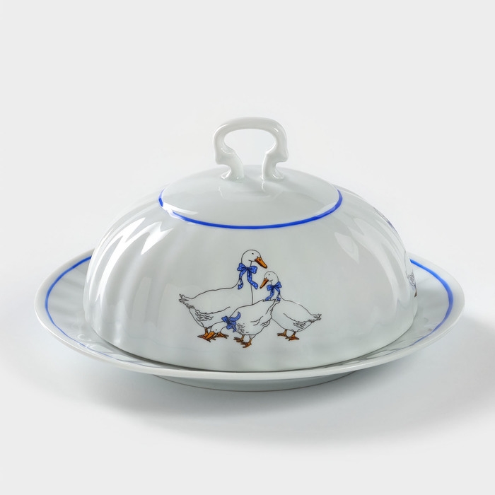 Масленка фарфоровая «Гуси», 500 мл
