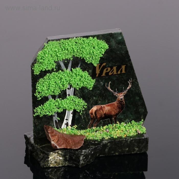 Сувенир-скол "Олень", змеевик, каменная крошка, малый, микс