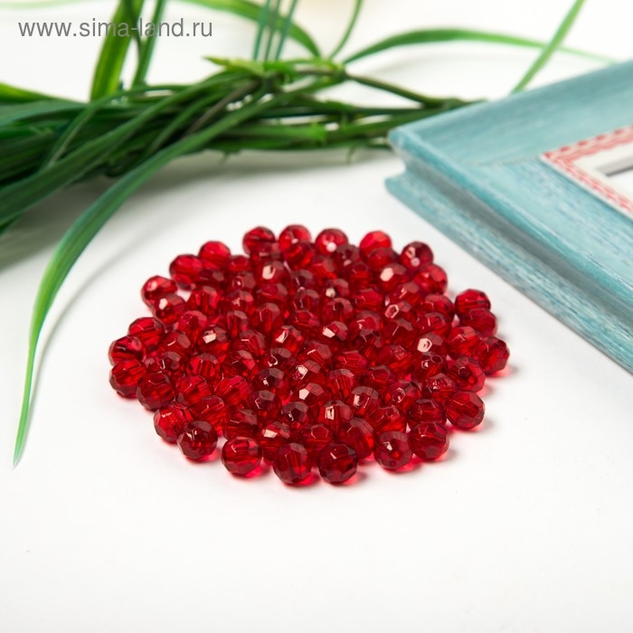 Бусины акрил "Круглые" 8 мм, 25 гр. тёмно- красный